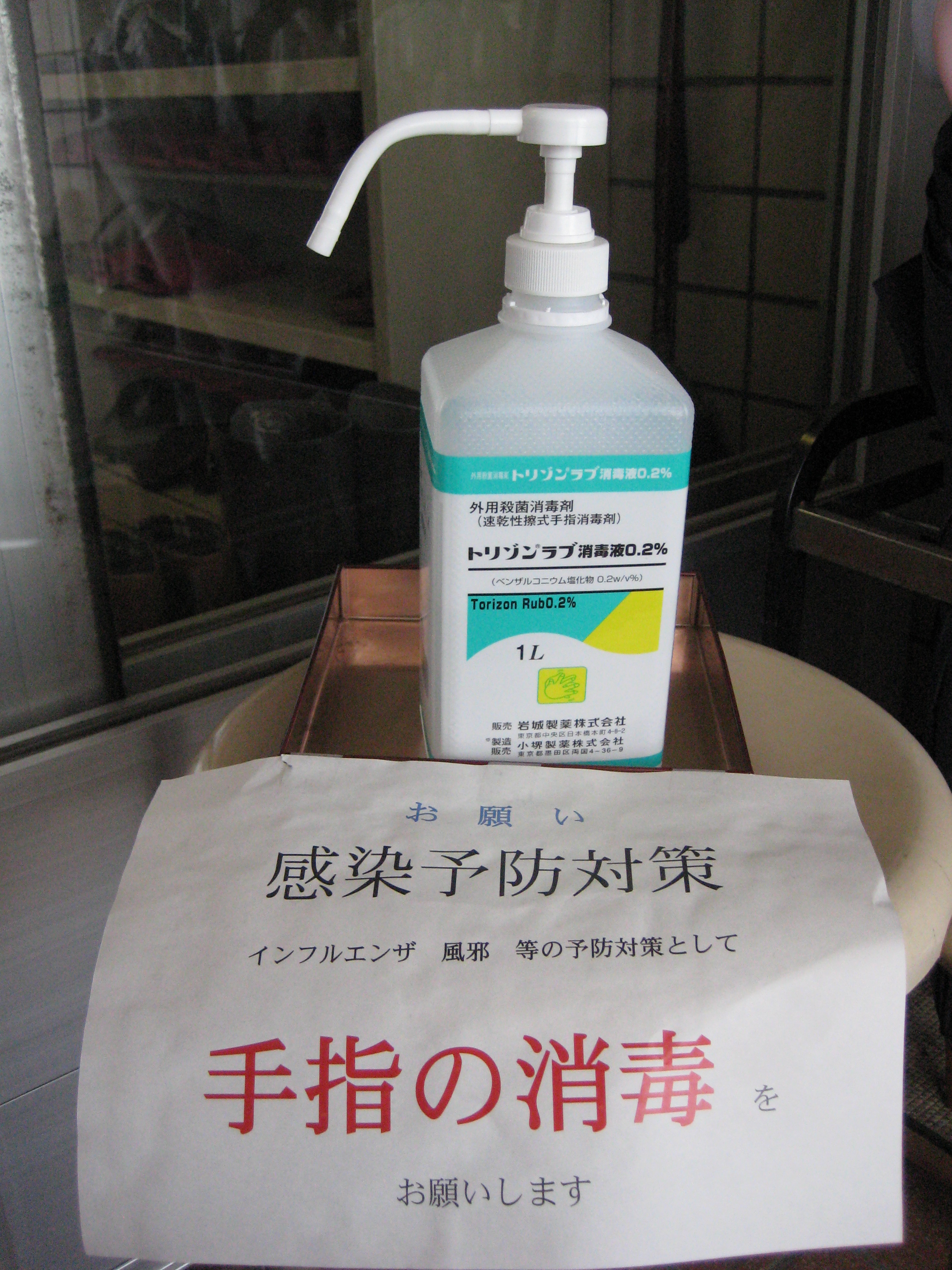 石山センターの玄関には手指消毒液を設置してありますので、是非ご利用下さい。皆さんのご理解ご協力をお願いいたします。