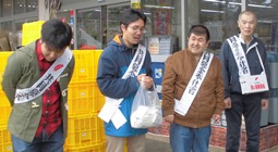 DCMホーマック㈱様の入口で「募金にご協力をお願いします」と、大きな声で呼びかけをしました。